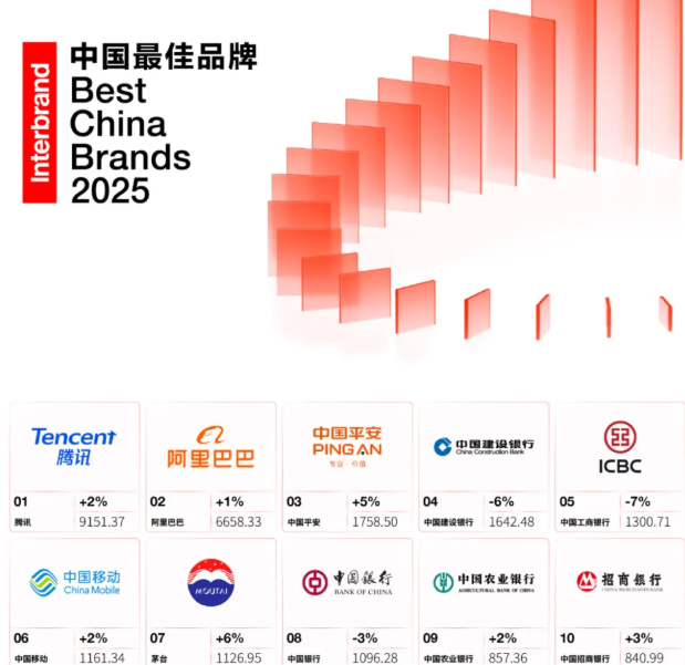本次榜单显示,上榜品牌总价值达3.43万亿元,腾讯、阿里巴巴、中国平安位列前三甲。Interbrand指出,在高质量发展的背景下,中国领先品牌正通过精准定位、深度创新与可持续战略实现价值跃升。中国平安凭借“综合金融+医疗养老”双轮驱动模式,深度融合人工智能技术,持续推进“省心、省时、又省钱”的三省服务体系,展现出强大的品牌韧性与增长动能。