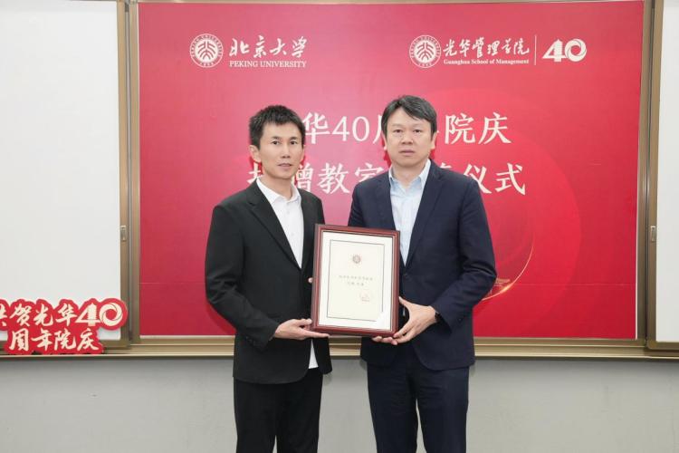 作为北京大学光华管理学院杰出校友,沈鹏自2016年开始定期在北大光华管理学院进行创新创业相关分享,并担任北大光华管理学院MBA校友导师。光华40周年之际,刘俏院长向沈鹏颁发了“北京大学教育贡献奖”,表彰沈鹏积极支持光华管理学院发展。