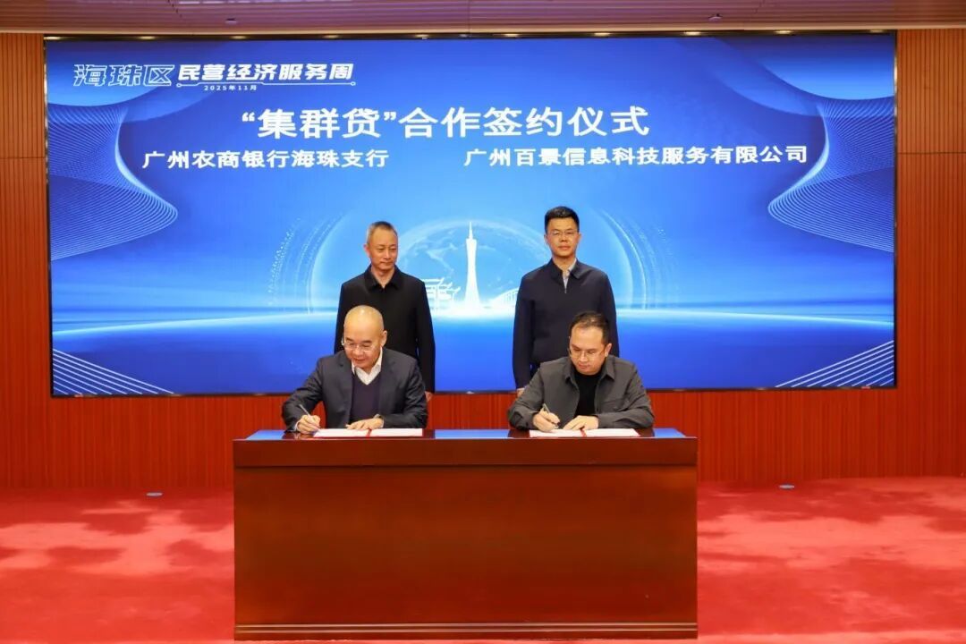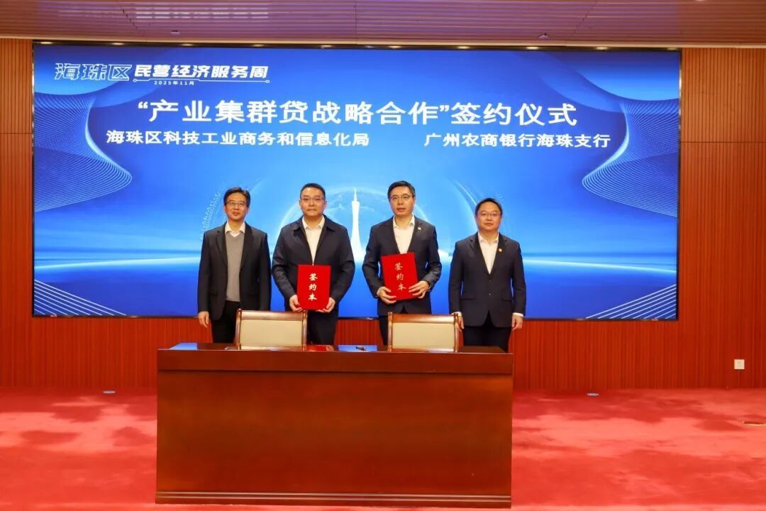在活动现场,海珠区科工商信局与广州农商银行签署了战略合作协议,广州农商银行海珠支行与博兴新材料、百景信息、营客信息等企业达成首批意向性授信。